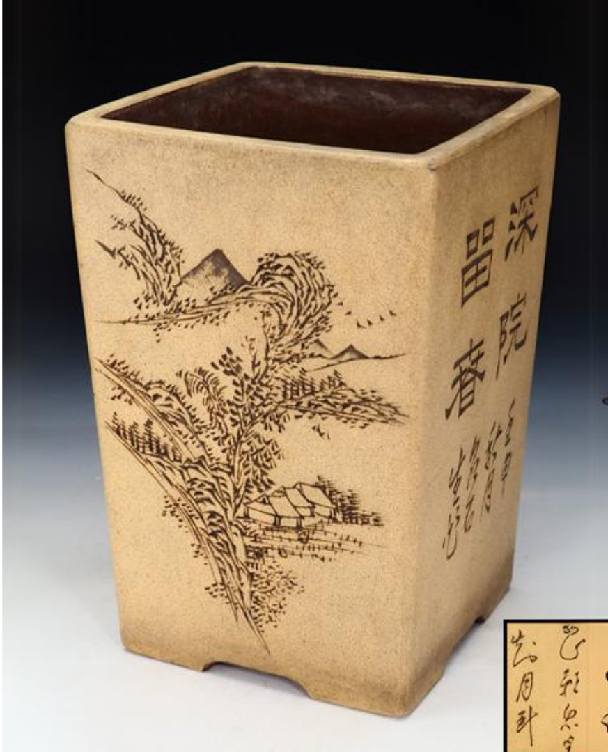 中国古玩 白泥内朱泥四方形植木鉢
