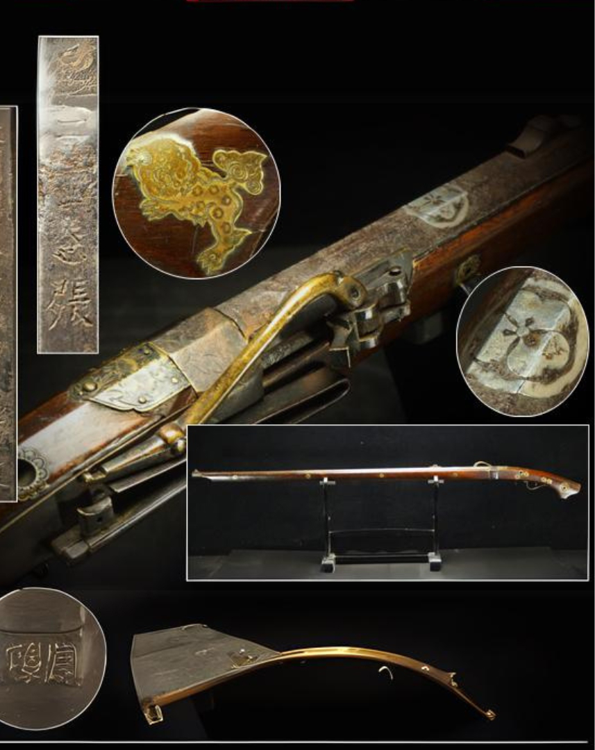 片喰家紋銀象嵌獅子貼付銅象嵌手火縄銃