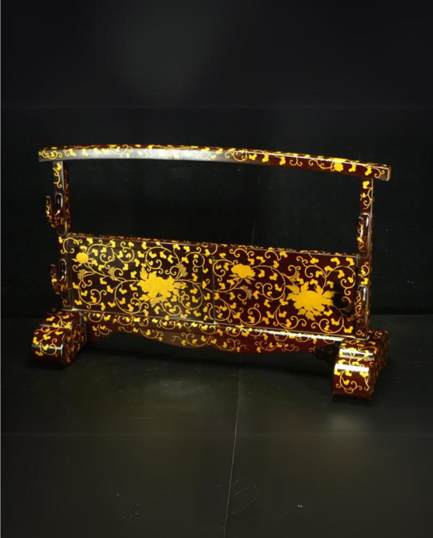 蒔絵牡丹花図二本刀掛け